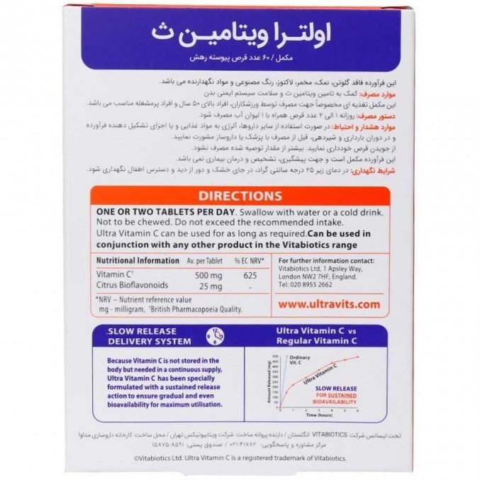 قرص اولترا ویتامین ث ۵۰۰ میلی گرم ویتابیوتیکس ۶۰ عدد Ultra Vitamin C