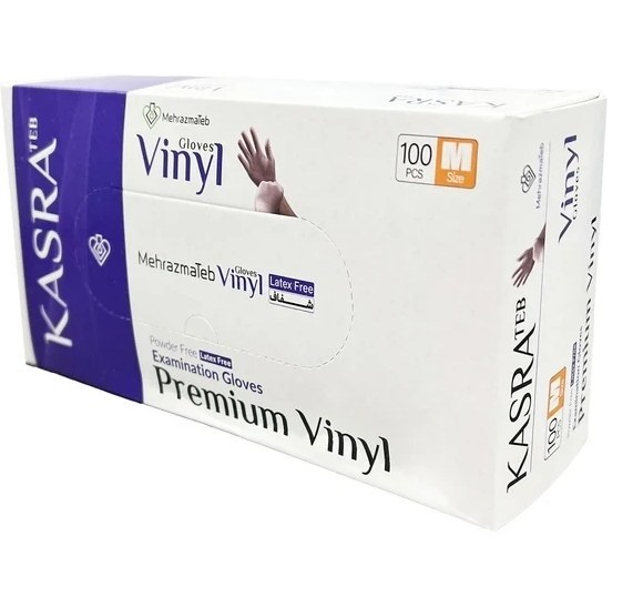 دستکش وینیل کسری طب مدل Latex Free سایز مدیوم متوسط M بسته 100 عددی
