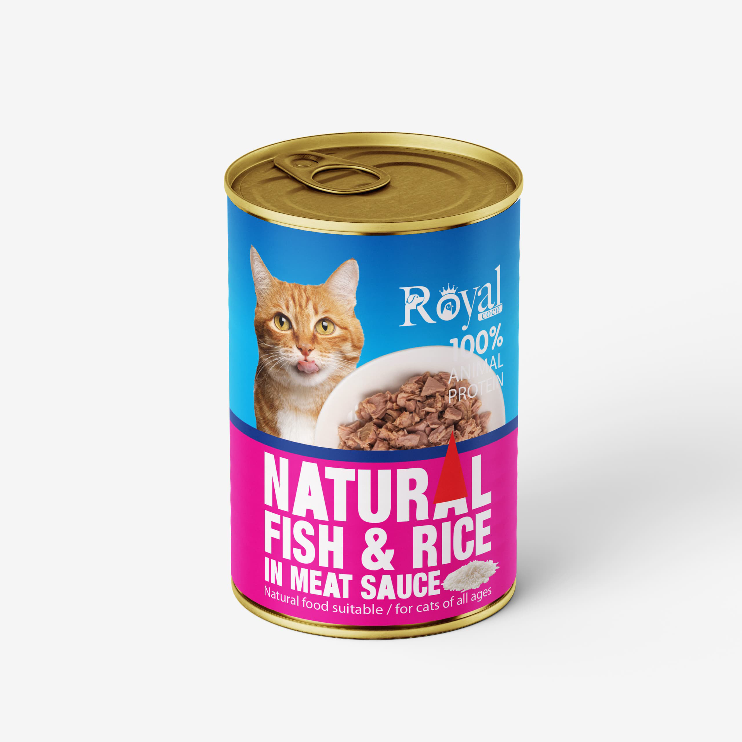 کنسرو گربه رویال کوکو نچرال با طعم ماهی و برنج در سس گوشت وزن ۳۸۰ گرم