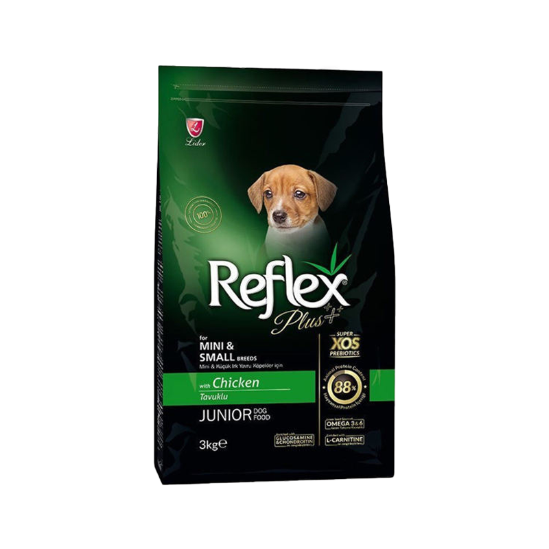 غذای خشک توله سگ و نژاد کوچک با طعم مرغ رفلکس پلاس وزن 3 کیلوگرم
