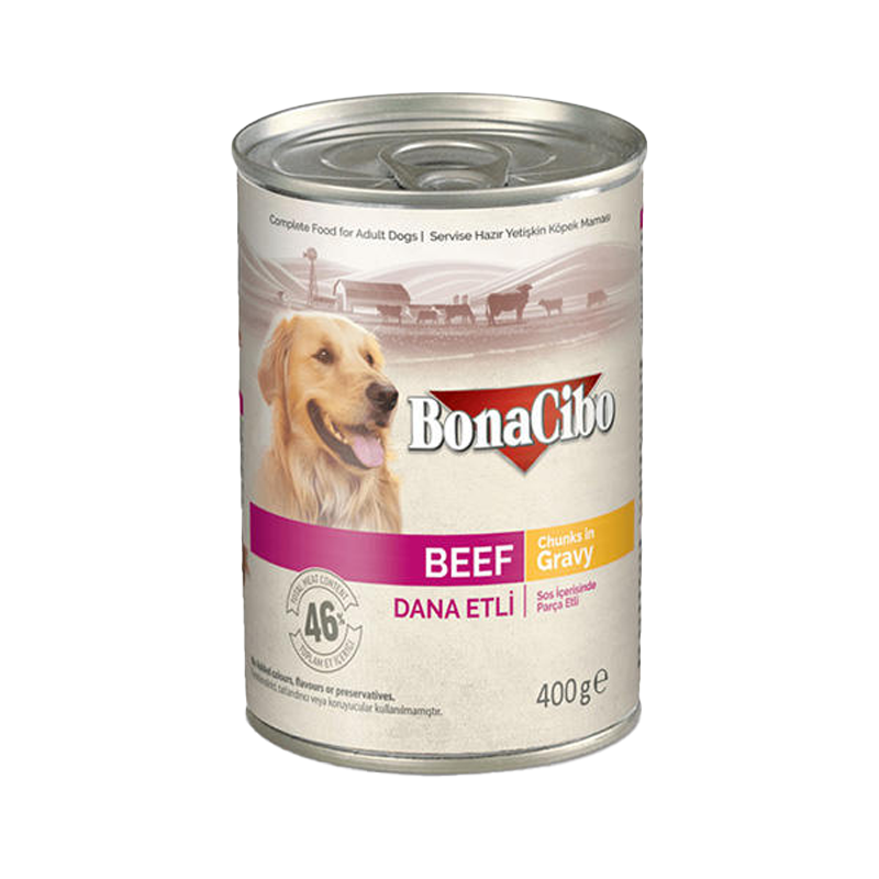 کنسرو غذای سگ بوناسیبو مدل Beef Chunk in Gravy وزن 400 گرم