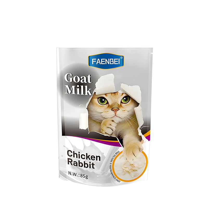 پوچ گربه فنبی با طعم مرغ و خرگوش در شیر بز Faenbei Cat Goat Milk with Chicken & Rabbit Pouch وزن 85 گرم