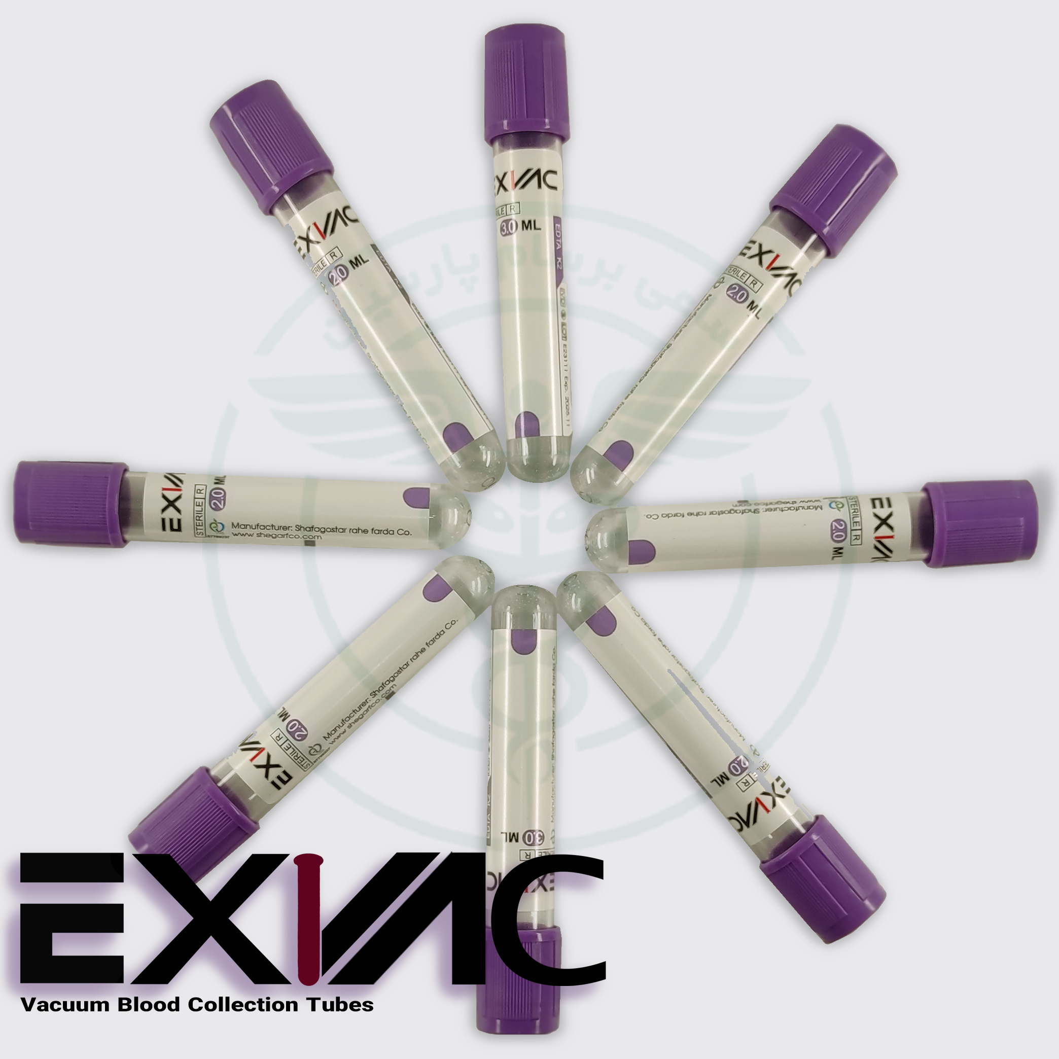 لوله خونگیری وکیوم EDTA CBC K2 برند EXVAC بسته 100 عددی 6 میل